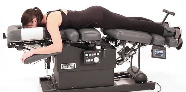 The Traction Table is adjusted so that the patient assumes a position that aligns their spine and allows them to lie straight down on the surface without any pressure points being exerted on the spine.